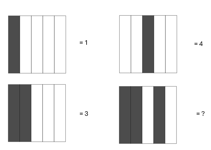 Um determinado código é formado por colunas pintadas. Seguem alguns exemplos. Qual é o número faltante? Resposta no próximo post.