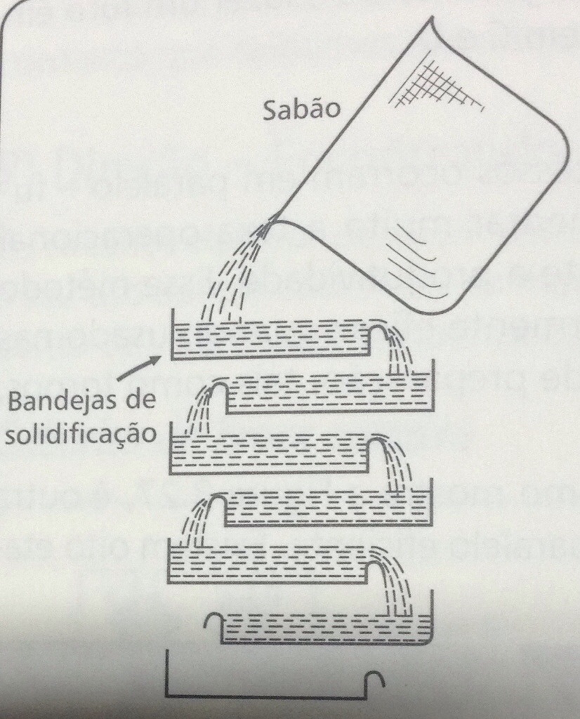 Numa fábrica de sabão, o processo consistia em derramar o sabão numa forma enorme, no chão.