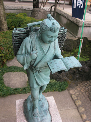 O consultor da época dos samurais chamava-se Ninomiya Kinjiro e a estátua da foto está presente em diversas escolas de primeiro grau do Japão, como um símbolo de parcimônia, esforço e doação.