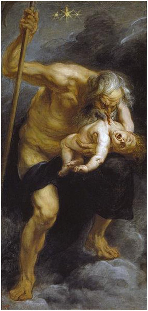Cronos: Cronos (o Tempo) era um titã que foi o pai de vários deuses gregos. Mas, temendo ser destronado por um de seus filhos, ele os devorava um a um. É uma metáfora do Tempo que cria e destrói a todos.