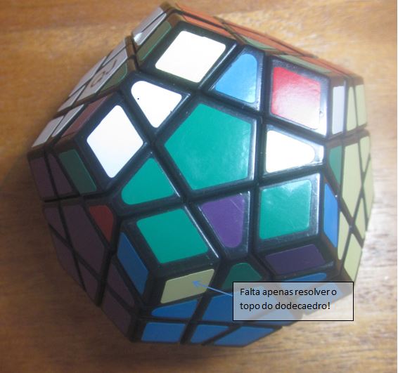 A próxima etapa será a resolução do topo, que embora tenha bem menos peças que o resto do dodecaedro, é a parte mais difícil.