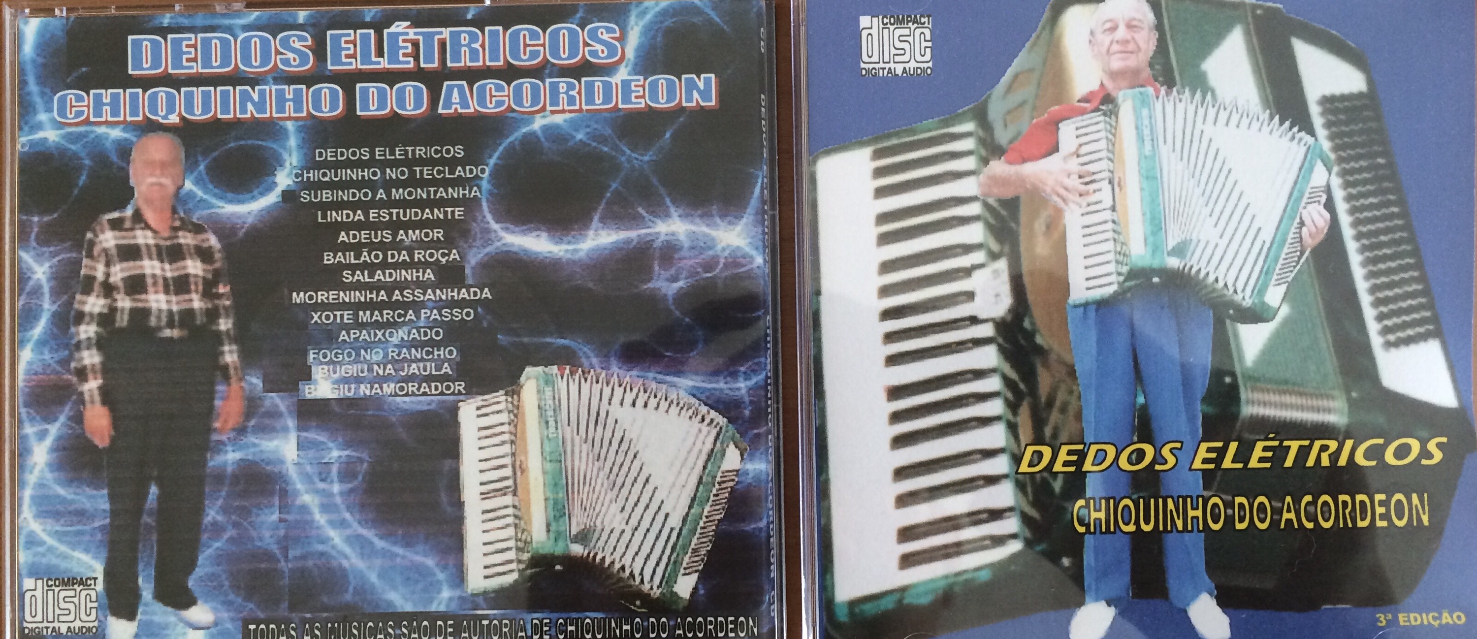 Pergunto quanto é, e ele me diz “Vinte reais”. Diz que ele era muito bom com o acordeon, e que as músicas são de sua autoria.