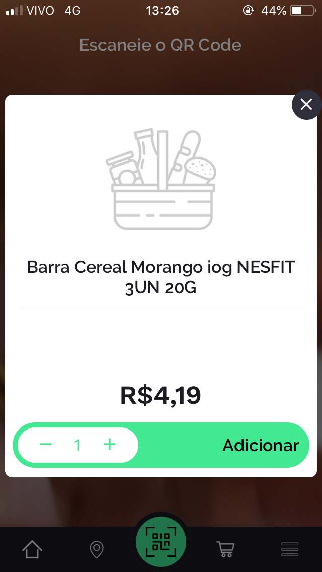 Para comprar, basta utilizar o celular para escanear o código do item. Vai abrir uma cesta de compras, como as de e-commerce.