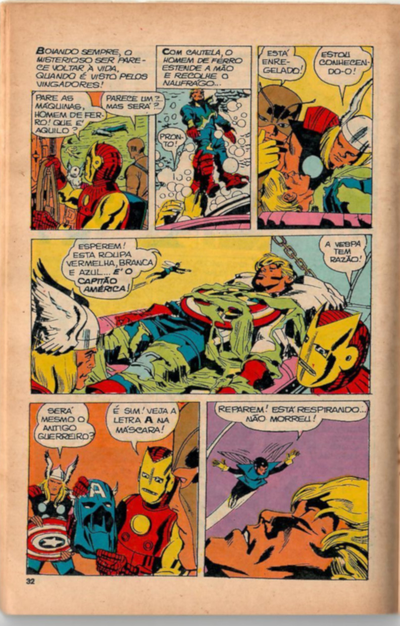 Nesta época, tudo tinha que ser explicado (era muito ingênuo, como foi dito). Como explicar que o Capitão América da Segunda Guerra continuaria jovial e forte, 30 anos depois? Eles inventaram que o personagem tinha caído em mares gelados, teria sido congelado num iceberg por 30 anos, e por isso tinha mantido sua juventude. Namor, o príncipe submarino, destruiu o iceberg e o capitão foi descongelando nos mares.