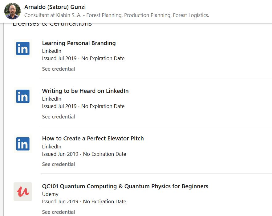 Cada mini-curso desses tem quizzes, não muito difíceis, e emitem um certificado de conclusão ao final – certificados esses que podem ser colocados no perfil do LinkedIn.