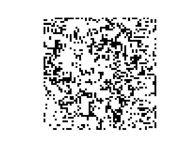 As regras do jogo acima foram cuidadosamente escolhidas, para entrar em equilíbrio. Rodando várias iterações, começam a surgir alguns padrões.