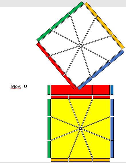 A primeira parte é a da notação básica. Ela usa a notação do Rubik: Upper, Down, Right, Left, Front, Back (esse últimos dois não são usados aqui).