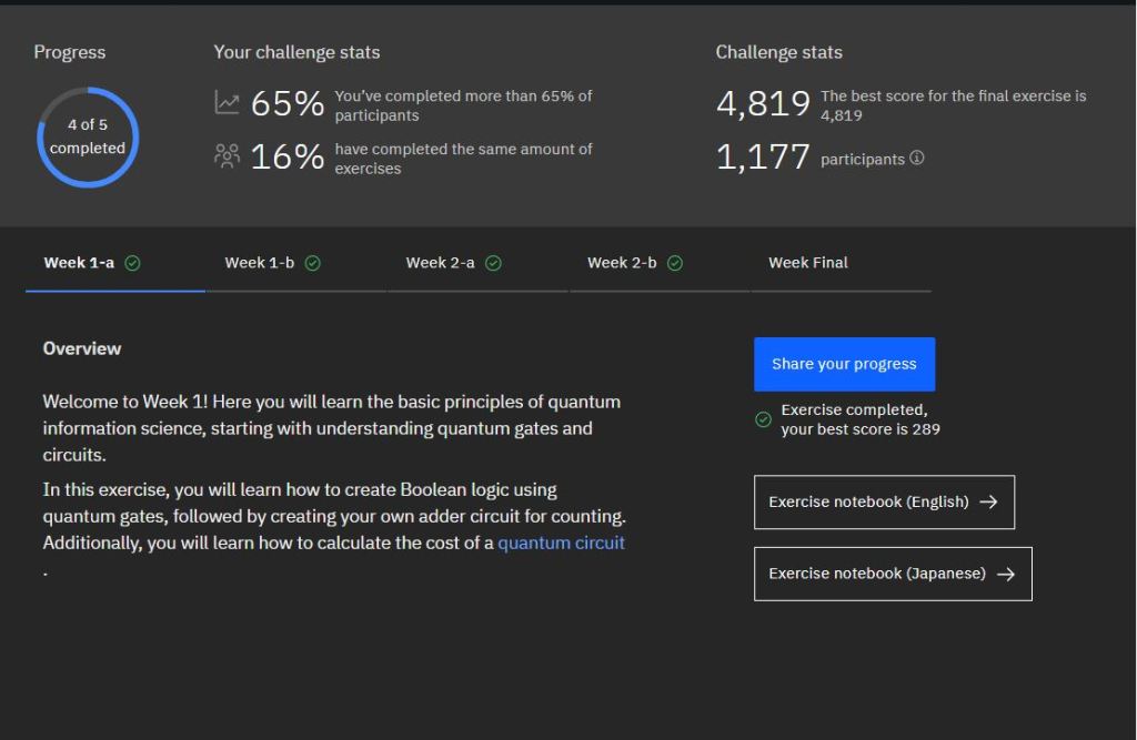Finalizei a participação no IBM Q Challenge Fall 2020, resolvendo 4 questões de 5.