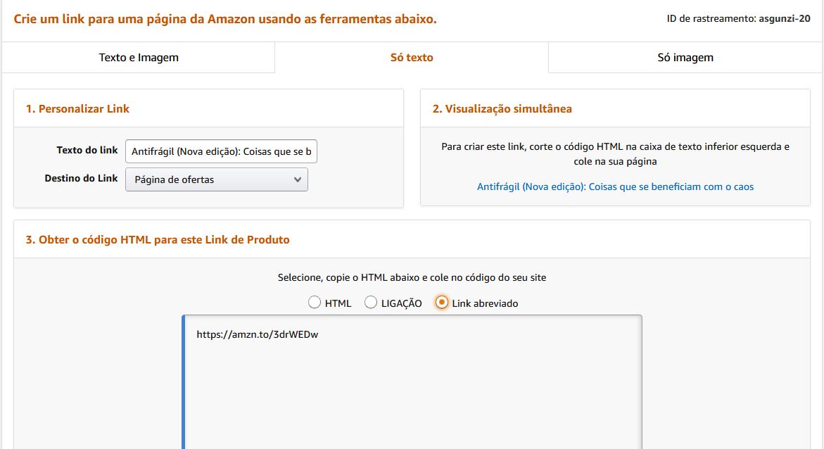 Digamos que eu queira divulgar o link do excelente livro “Antifrágil”, de Nassim Taleb.
