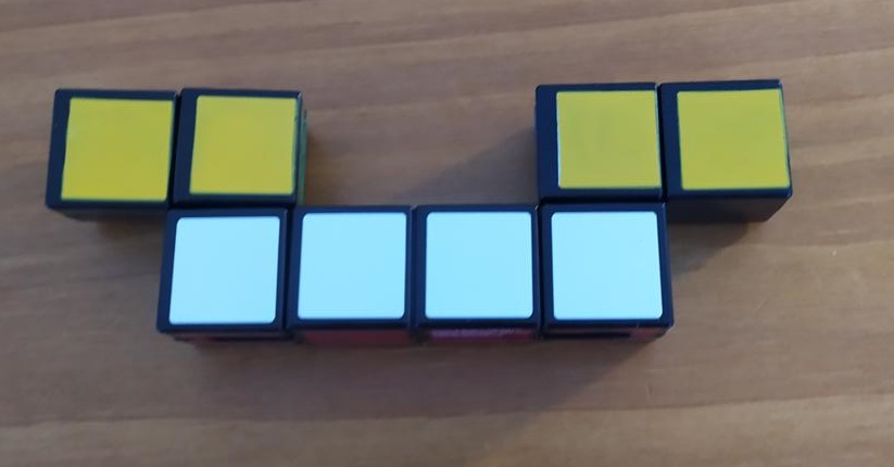 Já o da direita, é uma espécie de “cobrinha”. Algumas das peças giram, e o desafio é colocar no formato original.
