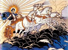 Segundo a mitologia grega, Hélio é o Deus do Sol. Ele comanda uma carruagem dourada puxada por 4 cavalos, percorrendo o céu começando do leste, de manhãzinha, e terminando a oeste, no fim da tarde…