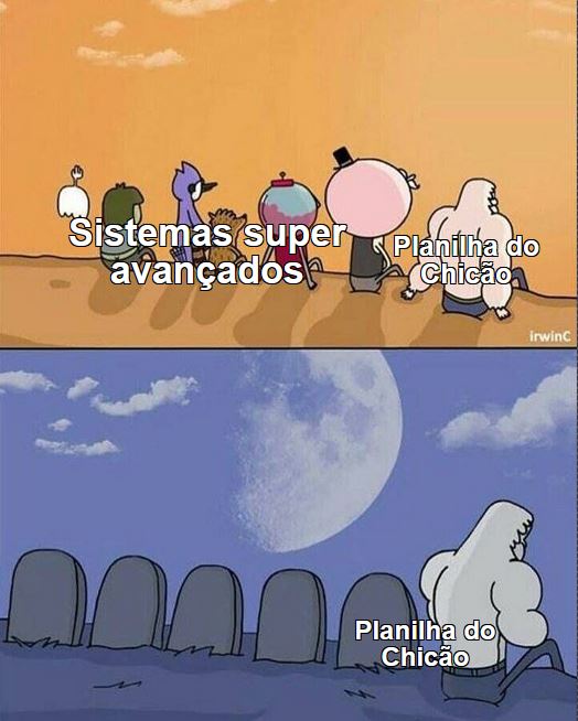 Anos depois, retorno para ver como o trabalho está. Realmente, a ferramenta de otimização está rodando, com melhorias aqui e acolá. Porém, lá no finalzinho do processo, na palavra final da decisão, quem eu encontro? A planilha do Chicão, firme e forte.