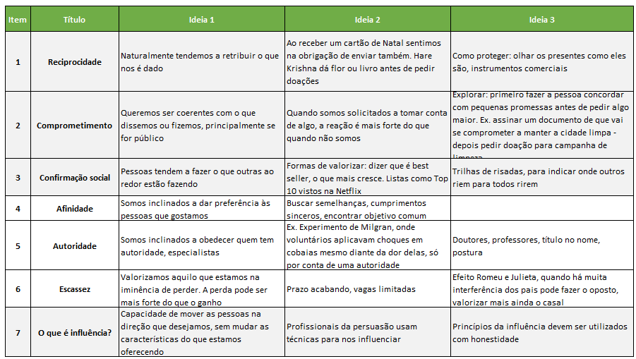 Os 6 princípios da Influência, de Robert Cialdini, são dicas importantes para 1) Influenciar outras pessoas 2) Evitar influências indesejadas. É, no mínimo, bom conhecer.