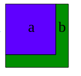 Suponha que queremos a raiz de a + b, e o quadrado a seguir tenha exatamente as dimensões desejadas.
