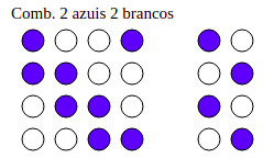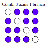 De modo similar, há quatro combinações com 3 azuis e 1 branco.