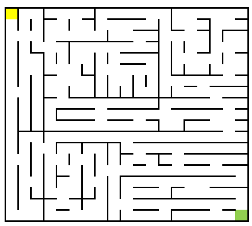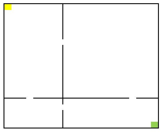 O algoritmo utilizado é simples. Comece com um retângulo, escolha uma linha horizontal, uma vertical aleatórias, e crie duas saídas também aleatórias.