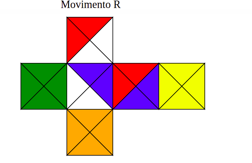 O Movimento R (right) significa um movimento da peça da direita, no sentido horário.