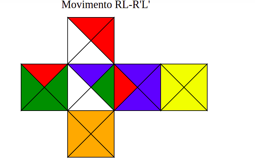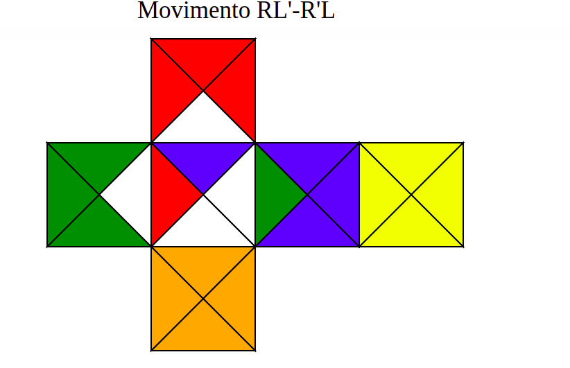 O movimento RL – R’L’ envolve duas peças centrais e uma da parte superior:
