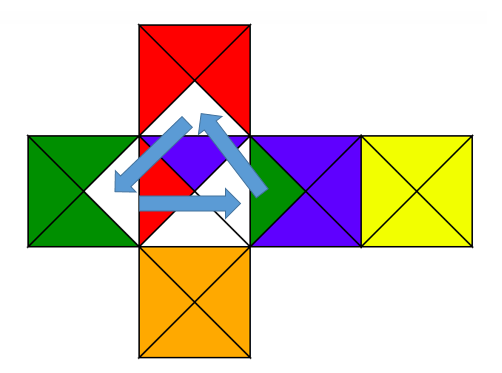 Para ilustrar os movimentos, vamos “desdobrar” o cubo conforme esquema abaixo.
