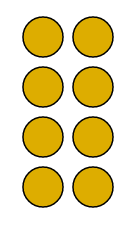 Outro exemplo: 8 dividido por 2 = 2 colunas com 4 bolinhas de altura (o quociente). No caso, o resto da divisão é zero.