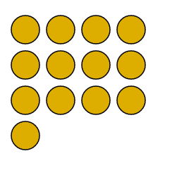 Para o caso 13 / 4, não consigo arrumar 13 bolinhas em 4 colunas. Consigo arrumar 4 colunas com 3 bolinhas de altura (quociente), e vai “sobrar” uma linha com uma bolinha. Essa “sobra” é o resto da divisão.