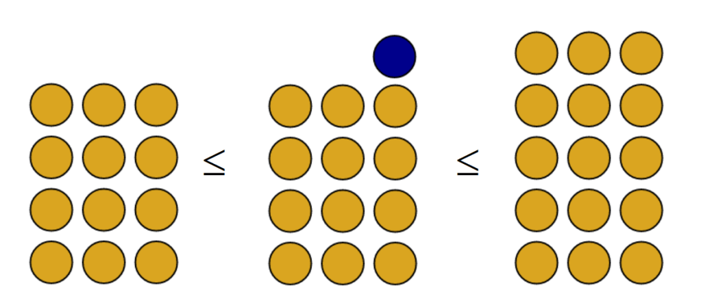 Existe q = 4 tal que q*b = 12 menor do que 13 (basta tirar a linha do resto), e (q+1)*b = 15, maior do que 13 (basta completar a linha do resto com outras bolinhas.