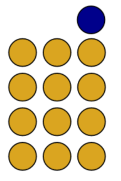 No caso a = 13 e b =3, as pedrinhas vão estar dispostas em 3 colunas, com uma pedrinha de resto.