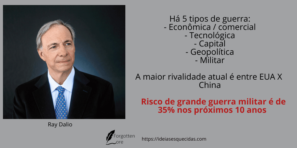 Ele cita vários temas de seu último livro, “Principles for Dealing with the Changing World Order”, como ciclos econômicos, ascensão da China, possibilidade de guerra.