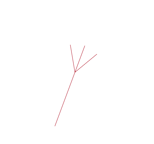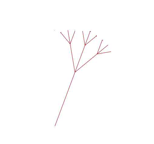 No caso da árvore, o padrão é: inicie com um aresta qualquer. Ao final dela, acrescente três arestas com metade do raio, separadas entre elas em 30 graus.