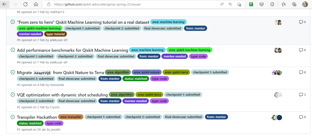 There are several themes, including tutorials, optimization, quantum machine learning and so on. The advocates can candidate to work in the projects, and, if they are accepted, the match is made. It is possible to have groups of advocates working together in the project.