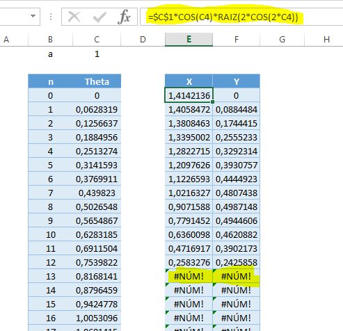 Como traçar a Lemniscata no Excel