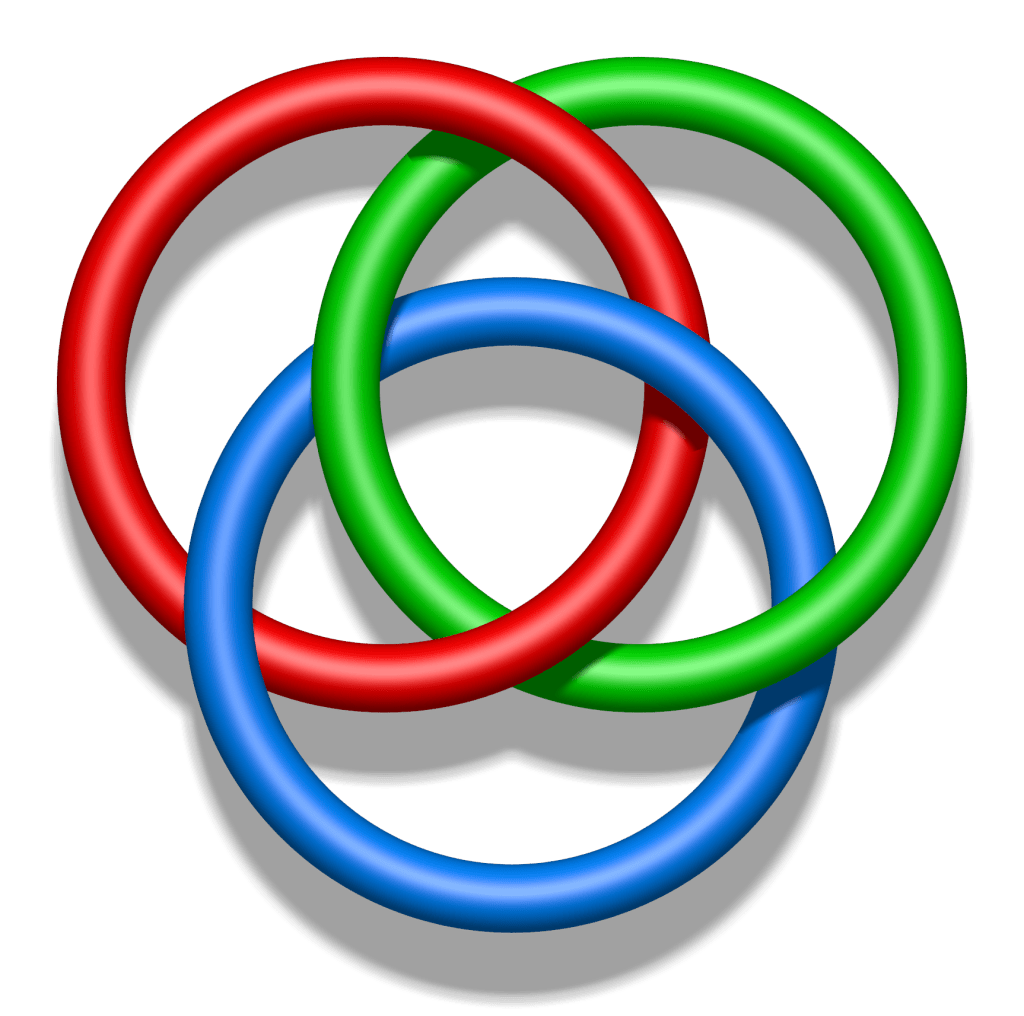 Três círculos entrelaçados, com uma propriedade deveras particular: cortar qualquer círculo liberta os outros dois.
