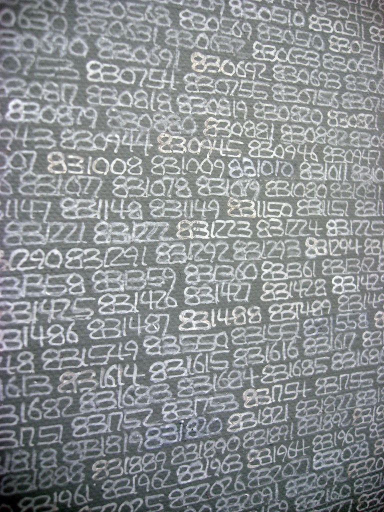 Roman Opalka. Artista francês de origem polaca, num dia de 1965 iniciou uma série de pinturas de números. Escreveu o número 1 no canto superior esquerdo do quadro, depois o 2, etc, obstinado a escrever todos os números até o infinito, ou até onde conseguisse chegar em sua vida.