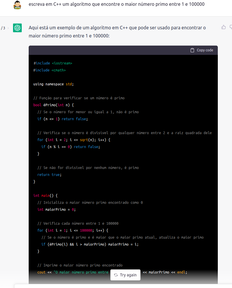 Um último teste. Escrever algoritmos. O algoritmo proposto é subótimo, mas é impressionante assim mesmo.