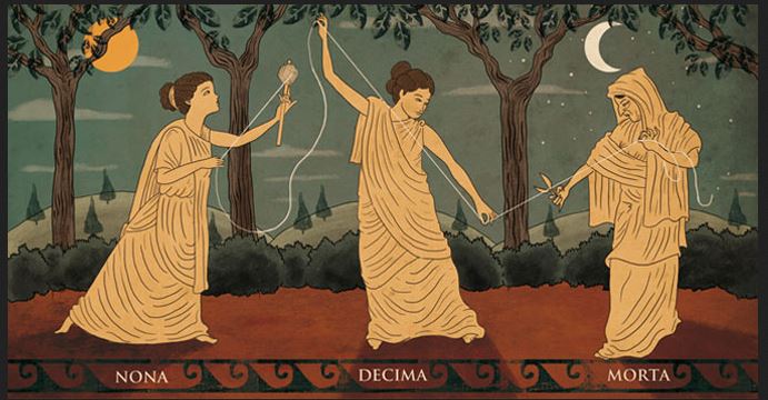 Na mitologia grega, as Moiras são três irmãs que determinam o destino dos seres humanos. Uma faz o fio, a outra tece, e a terceira, corta. Elas utilizam a Roda da Fortuna: alguns fios são privilegiados, outros, não. Elas não são nem boas nem más, apenas fazem o seu trabalho. Uma vez tecido o destino da pessoa, nem os deuses têm o poder de alterar.