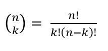 A combinação de n elemento em k pode ser descrita pela fórmula abaixo: