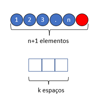 Há uma forma simples de visualizar. Imagine que n+1 elementos devem caber em k espaços. O de vermelho é o elemento número n+1.