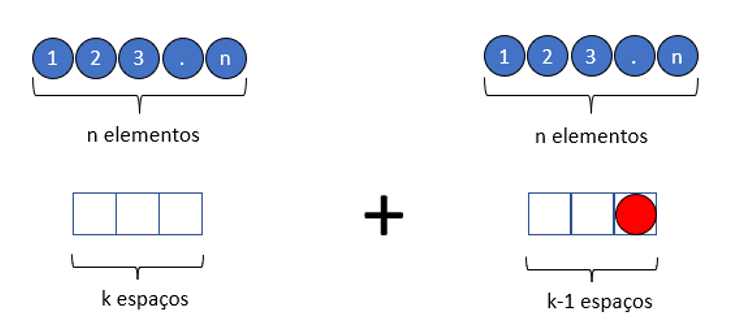 Somando ambos, terei exatamente a combinação de n+1 elementos em k espaços.