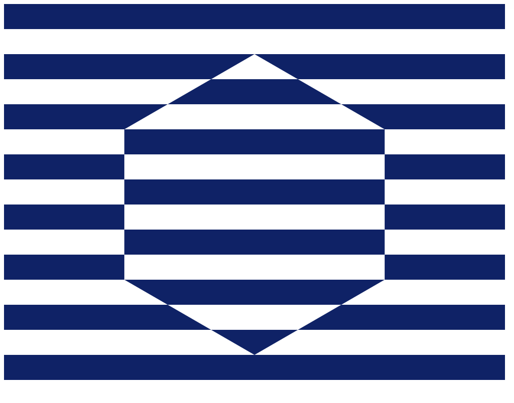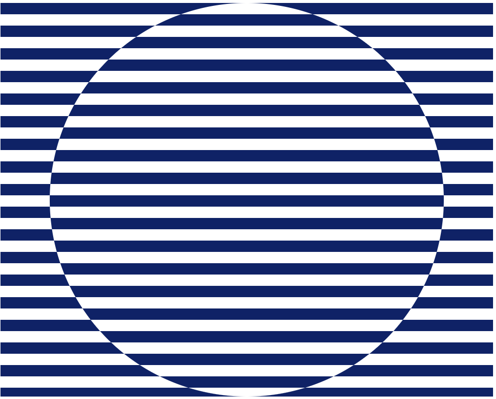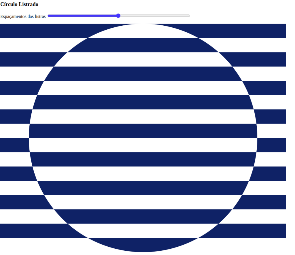 Na essência, são apenas retângulos com cores alternadas (que formam as listras), e o círculo no meio. Aqui, tem um truque especial. Existe um atributo no D3, o “clip-path”, que funciona como um “cortador”. Gerei exatamente as mesmas listras, mas com cores trocadas, e cortei no formato do círculo.
