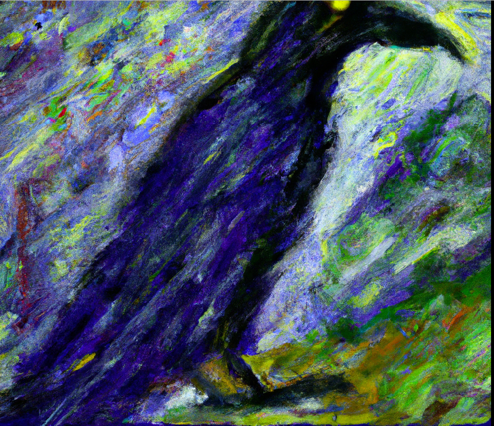 Na foto abaixo, mandei o Dall-E desenhar o corvo de Allan Poe, e a IA imaginou isso: