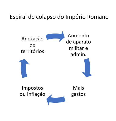Caso: O Império Romano cresceu conquistando províncias, sustentada por anexações, taxas e pressão inflacionária.