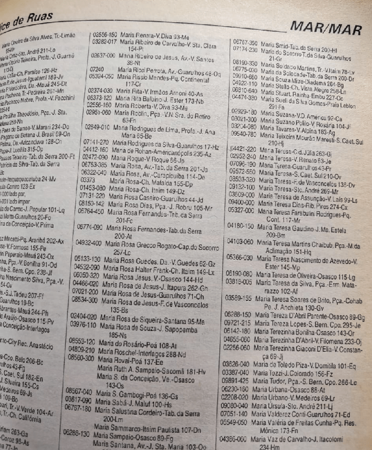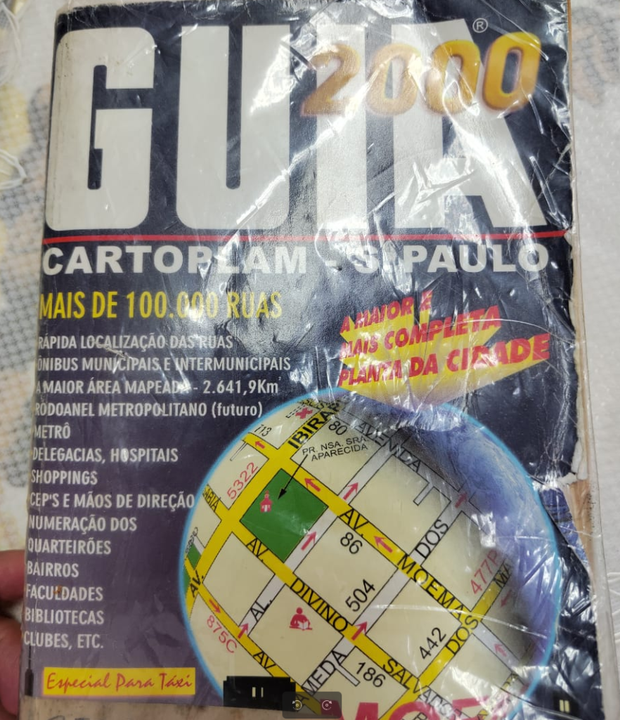 Primeiro, dá para notar a data, ano 2000, na capa da edição. Devido à mudança das vias, os guias eram atualizados todos os anos, e tínhamos que comprar outra edição de tempos em tempos.