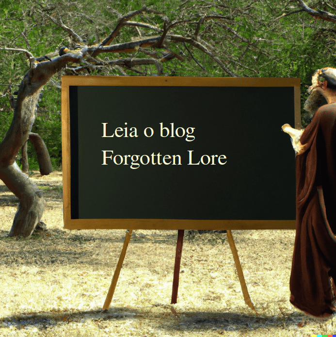 Por fim, pedi para o Dall-E desenhar Aristóteles ensinando filosofia numa floresta, e um quadro-negro em branco, para eu passar uma mensagem: