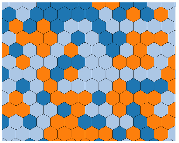 Mais um random tiling, dessa vez com formas hexagonais. Mexa interativamente em: https://asgunzi.neocities.org/ArteMatematica/HexTiling É possível mudar o tamanho e o número de cores. A animação torna até hipnotizante. Sobrepondo padrões de tamanhos diferentes, é possível criar uma arte com hexágonos. Veja também: Forgotten Math: https://asgunzi.neocities.org/ferramentas Trilha Sonora: How Insensite – Astrud Gilberto