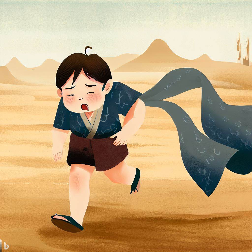 Um jovem ambicioso, disposto a sair da pobreza, aceitou o desafio. Ao nascer do sol, começou a correr com todas as forças, a fim de obter a maior área possível. De hora em hora, ele fixava as estacas de marcação, e continuava a correr, sem pausa para refeições, no máximo tomava água de quando em quando.