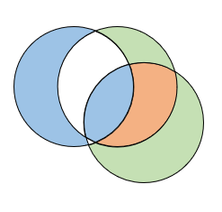 Se eu selecionar um deles para pintar, vai selecionar o círculo inteiro. Como faço para pintar somente a intersecção?