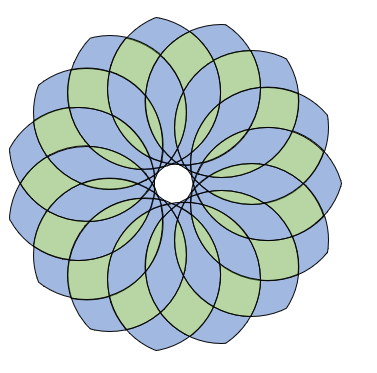 Com 15 círculos e trocando parâmetros de cor e raio: