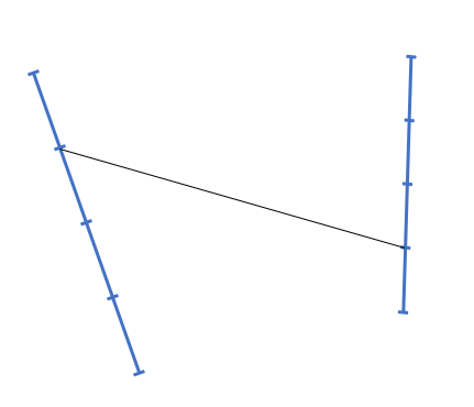 Una o p-ésimo pedaço do primeiro com o p-ésimo pedaço do segundo (do final para o começo), usando uma reta.
