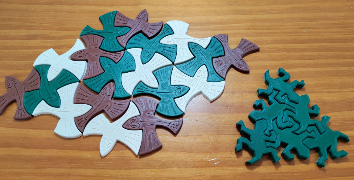 Junto às peças, algumas do lagarto de Escher, já descrito em post anterior.