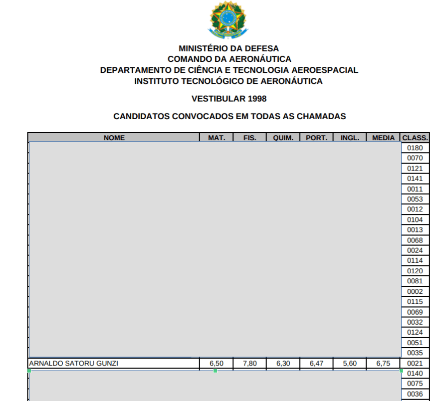 Quase 30 anos depois, fiquei sabendo que passei na 21a colocação, dentre os convocados no vestibular do ITA!